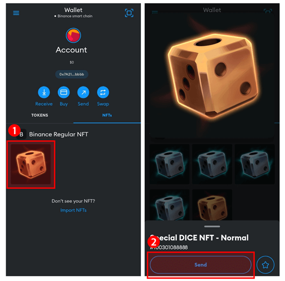 - - To apply for a Special DICE NFT item exchange, you must send the NFT first and then fill out the application form.